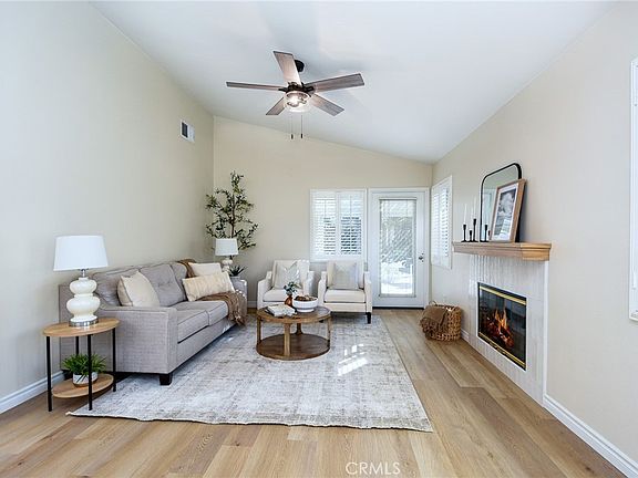 Are you looking for a home that has that new, never lived in feel but in an established, premier 55+ community? Here is a rare opportunity to buy a modern and renovated home in the much sought after community of The Colony in Murrieta. Bright and open, this home has been fully renovated and upgraded throughout. Upon entry, you will notice brand new, wood look LVP flooring, new paint, upgraded baseboards and trim. The kitchen has been fully modernized with brand new cabinetry, quartz countertops, Champagne brass hardware and matching Delta faucet, custom built hood range trimmed in white oak, and slatted, large center island. All appliances are brand new including a stainless steel dishwasher, gas range, microwave range hood. Take a step into the primary bedroom and you will see vaulted ceilings, fresh paint and trim, and continuous flooring throughout. The primary bathroom has been renovated with a new, double sink vanity, quartz countertops, Delta faucets and Kichler lighting. The master shower has been retiled with modern, exquisite subway tile. The washer and dryer are conveniently located in the primary closet where they are easily assessable. Brand new washer and dryer included in the sale. Step outside on the back patio and enjoy the sunny California weather. The backyard is adjacent to a green belt which is peaceful and private. This home is part of the Colony community that includes a 24-hour guard gate, a resort style clubhouse, a pool and 2 spas, lighted tennis, paddle tennis, pickle ball, gym, auditorium, cards, hair salon, library, billiards and lots of other activities, parties, events, concerts, movies and planned group trips. An 18-hole golf course is inside the gate.