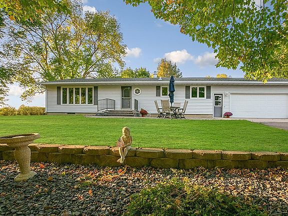 Meticulously maintained 2 bed, 3 bath 1960s rambler located on 1.22 acres exudes unmistakable pride in ownership. From the paved driveway & the steel siding to the newer roof & the exquisite stamped concrete patio, every aspect of this property has been lovingly tended to. Upon entering the main level, you are greeted by a delightful entryway with a built-in desk & coat closet. The open-concept formal dining & living room offers a breathtaking view of the wildlife-filled private yard through large beautiful new windows. Additionally, the main level comprises two bedrooms, a newly renovated 3/4 bath, laundry room & ½ bath. The kitchen is adorned with refaced solid cabinets, ample counter space & an adorable built-in booth. The lower level unveils a spacious family room, an additional versatile bonus room that could easily be transformed into another bedroom & a 3/4 bath. Cherished by the current owner for years, this home is now ready for a new owner to create unforgettable memories.
