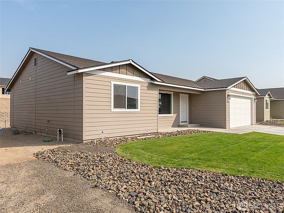 Maryhill Estates East - (Phase 2) is one of Sage Homes newest development located in E Wenatchee, just minutes from town. This well-appointed one level home is the Tumwater Floor Plan and will appeal to all. It has an open floor plan and enjoy 3 bedrooms and 1.75 baths with 2 car garage. Primary Bedroom is spacious and offers a walk-in closet. Kitchen offers dark stained cabinetry and quartz countertops. Front yard landscaping included. This home is energy efficient and offers Energy Star windows with Low-E glass, high efficiency heat pump and programable thermostat.***Completion Date: 08/19/2025. Home similar to photos but not exact.