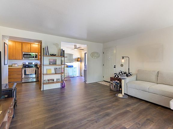 This beautiful 1-bedroom, 1-bathroom upper-level end unit offers comfort, style, and convenience in a quiet Concord community. Freshly painted throughout and featuring luxury vinyl plank flooring, the home is move-in ready with modern finishes. The open-concept living and dining area is filled with natural light and flows seamlessly onto a private balcony perfect for relaxing or entertaining. The spacious kitchen includes a breakfast bar and dining nook, with sliding door access to the outdoor space. The generously sized bedroom features a large mirrored closet and its own sliding door to the balcony, creating a serene and functional retreat. Additional highlights include an updated bathroom with a tub-shower combo, an in-unit washer and dryer tucked away in a hallway closet, and a separate storage closet. The exterior storage unit off the balcony has also been updated with a new roof, paint, and flooring. This unit is part of a well-maintained complex that includes amenities such as a community pool, greenbelt, and covered carport parking. Located close to shopping, restaurants, public transportation, and medical facilities, this condo offers a perfect blend of low-maintenance living and everyday convenience.