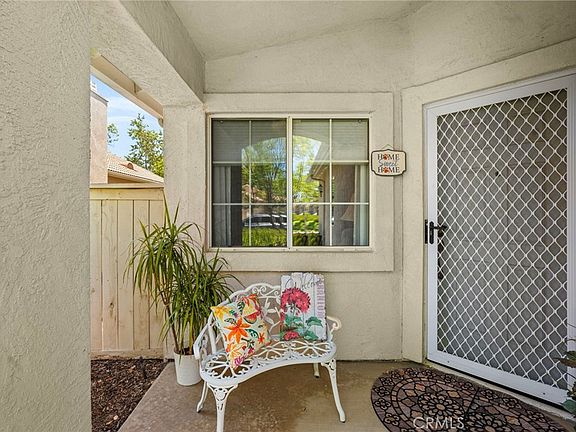 Welcome home to Resort Living at The Colony, a spectacular 55+ community in Murrieta. Spacious and turnkey, 2 bedroom, 2 bath home with 1,212 sqft and 2 car attached garage. Well laid out floorplan with high ceilings- updated and well taken care of. The kitchen has recently been upgraded and remodeled to include white cabinets with brushed nickel pulls, solid slab quartz countertops, newer appliances, black anti-scratch double bowl sink and updated brushed nickel plumbing fixtures. Home has a dining room and and separate family room with wood burning or gas fireplace. Primary bedroom suite has a sliding glass door with direct access to backyard. Updated primary bathroom with updated cabinets, double sinks, updated plumbing fixtures, walk in shower and large walk-in closet. Secondary bedroom at the end of the hall is light and bright with double closet doors, currently being used as an office. Guest bathroom has updated cabinetry and shower/ tub combo. Laundry room has built in cabinets above the washer and dryer. Wood laminate flooring with carpet in the bedrooms. Neutral and warm taupe interior paint, ceiling fans throughout, and pull down shades. Two car attached garage with roll up garage door, direct access into the home. Pull down stairs for easy attic access for even more storage. Walk out and enjoy your welcoming and private backyard. Alumawood patio cover with shrubs and artificial turf make this a low maintenance backyard. Backs to a nature corridor with views of mature trees- no neighbors behind make this a very private and serene space. The Colony is a PREMIER GATED SENIOR COMMUNITY for ages 55+ with a RESORT CLASS CLUBHOUSE, year-round pool, 2 spas, lighted pickle ball/paddle tennis and tennis courts. You can enjoy the gym, library, ping pong, billiards, hair/nail salon. There are groups & activities for all interests with an auditorium for shows, dances, banquets, concerts, movies, bingo & parties for all occasions. A privately owned 18-hole golf course is inside the gate. The HOA waters & maintains all front landscaping. Guard gated entry and 24-hour security patrol give you peace of mind. You will love the friendly neighbors and sense of community as you enjoy TRUE RESORT STYLE SENIOR LIVING in The Colony. Low taxes and in the heart of the fabulous city of Murrieta. Easy and convenient access to shopping, movie theater, restaurants and freeway access. Darling home located in a wonderful community-- come check it out and fall in love!