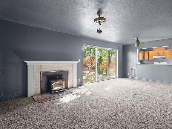 Cozy wood-burning fireplaceBrand-new carpetNewer roofPrivate back deckSliding glass doorsLarge shade treeLaminate flooring