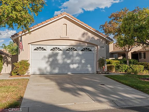 PRICE IMPROVED! Move-in ready and beautifully maintained, this charming home boasts a bright interior with vaulted ceilings and wood shutters on the windows. The open kitchen and dining areas flow seamlessly into the living room, which features a cozy fireplace with a mantle. The low-maintenance backyard offers a pergola-covered patio, providing privacy with a serene greenbelt backdrop. The spacious primary suite includes a walk-in closet, an ensuite bathroom with dual sinks, and a slider door leading to the backyard patio. With an attached 2-car garage, this home is located in the desirable Colony 55+ community. Residents enjoy guard-gated access, a golf course, clubhouse, salon, pool & spa, tennis courts, and beautifully manicured grounds. Conveniently located near the 15 and 215 freeways, shopping, dining, and just an hour’s drive to San Diego, Orange County, and Palm Desert!