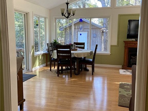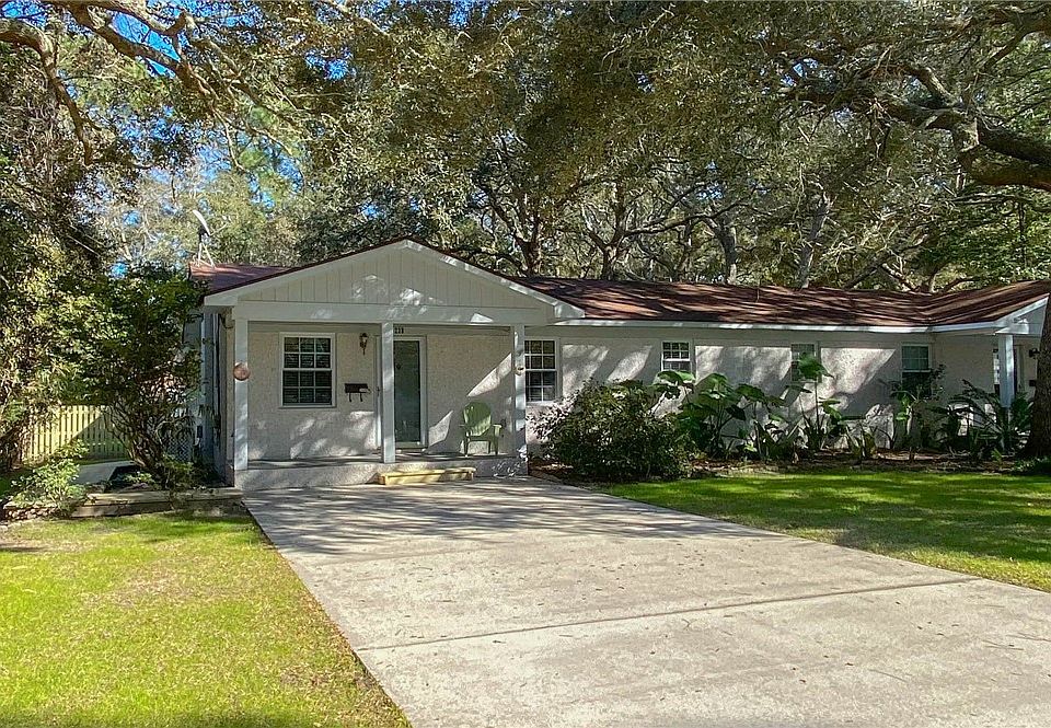 Great opportunity to own a half duplex on Jekyll Island. This bright and spacious duplex has been thoughtfully renovated. The large Jekyll room with hardwood floors says come sit and relax and view the landscaped and fenced backyard. There are two bedrooms (one primary), two baths, living area, dining/living room, and room for office/studio. The Jekyll room was added in 2012 with electric fireplace and vaulted ceiling. Plenty of room for entertaining or guests. Enjoy the back deck and open patio for those barbeques. Large storage shed. Short walk to the beach.
