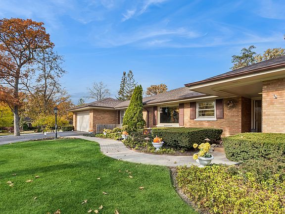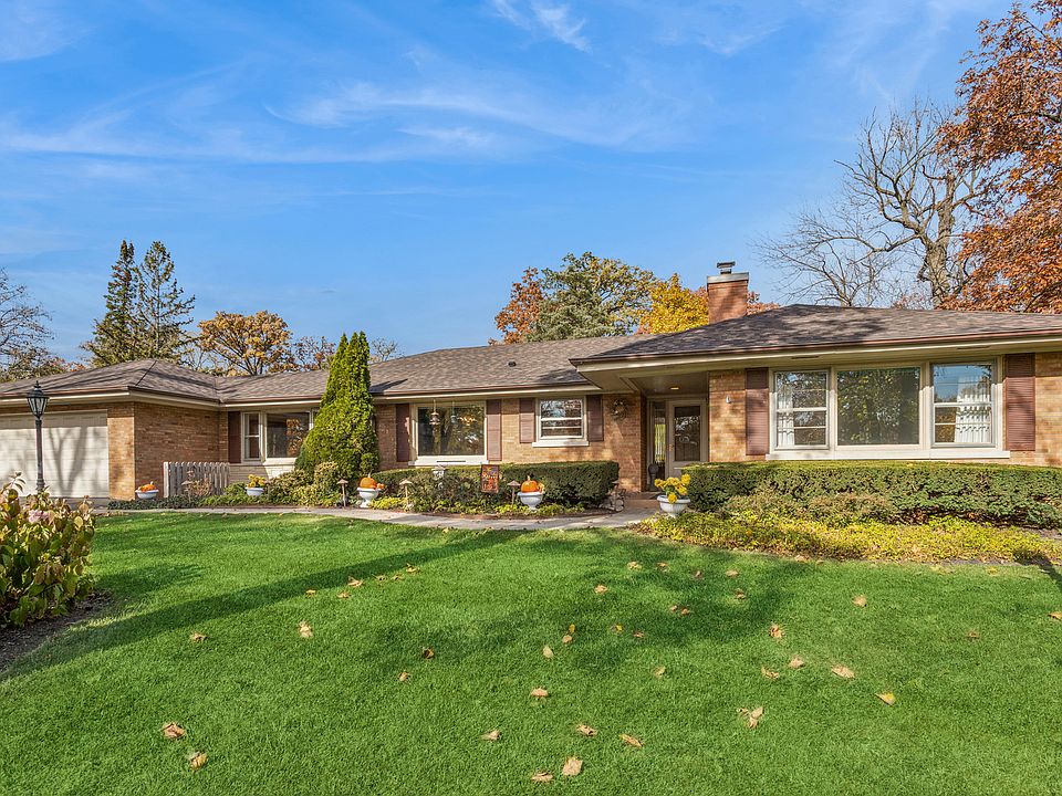 Welcome to this charming mid-century all brick Ranch home with curb appeal galore in beautiful and sought after Glen Ellyn Woods. Nestled on the corner of two leafy, tree-lined streets, this nearly half acre lot sits up high and features an impressive circular driveway. Step inside to the slate foyer, you'll notice the traditional floor plan with a welcoming flow. Kitchen includes a cozy eat in table space looking out one of the many large windows; there's great natural light in this home. Separate dining room opens to a truly inviting family room with w/b fireplace and gorgeous hardwood flooring. Adjacent is the large living room and a bright 3-season sunroom w/patio access. Large master bedroom includes a full ensuite with plenty of closet space. Hardwood floors sit under the carpet in the remaining 2 bedrooms and long hallway. Convenient new washer/dryer combo unit added in the hallway to complement the laundry in the basement. The expansive recreation room is enhanced with a vintage masonry bar and big layout with room for a gym, pool table, or 2nd family room space. Adjacent laundry area and work space. Clean 2-car garage has epoxy flooring. Several great "news" include roof and roof chimney (2024), furnace (2024), washer/dryer and resurfaced patio (all 2025). Home is dated and needs cosmetic updating, but has fantastic potential in one of the best locations in Glen Ellyn Woods. This is an estate sale and is being offered "as is".