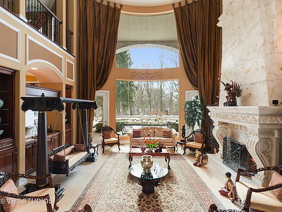 Magnificent Estate Home designed by renowned architect Dan Sater on gorgeous 2.5 acre wooded parcel. This 5 bedroom executive home set back from Hobson Road, has a dramatic entrance foyer with soaring 22' coffered ceilings. A gracious formal living room with a sweeping floor to ceiling seamless glass wall and panoramic views of the pool and wooded backyard, has an exquisite stone fireplace, and massive stone columns. The sumptuous first floor master suite has a fireplace and spa like bathroom with Roman style tub. The large chef's kitchen with massive island great for entertaining, has granite countertops, professional series commercial range, high end double door Subzero refrigerator. The main living areas have heated floors. All bedrooms are ensuite with private sitouts and walk-in closets. The basement is incredible, beautifully finished and perfect for entertaining with a full bar, fabulous 1000 bottle wine cellar and a luxurious movie theatre. It also includes a home gym complete with lockers and sauna/steam shower. Enjoy this home's superb architectural finishes, the 15-22' ceilings, crown molding, finest marble, the resort-like pool and patio, outdoor full kitchen with grill. A must see. Pictures can't capture how gorgeous this home is.