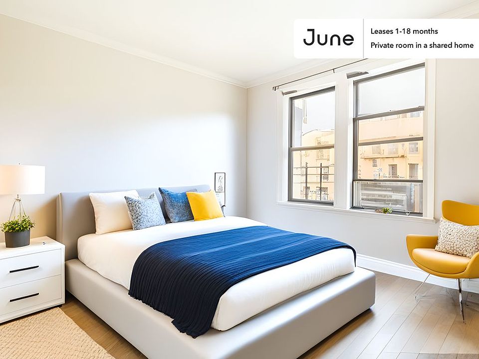 This Queen room in Astoria is available on a 12 month lease or a flexible short term (31 to 364 days) lease. You pick your custom start and end date. Monthly rent rate is determined by furnishing preference, move-in date and move-out date. Speak to a June representative for recommendations on the best stay duration for the lowest rate.