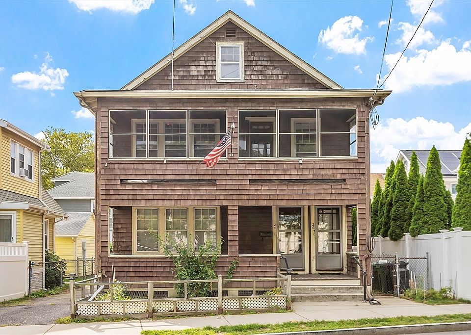Desirable East Watertown location. This classic two family, close to Arsenal Yards and the bike path along the Charles River, is sunny and spacious and a wonderful opportunity for an investor, contractor or home owner. First floor includes a large foyer, living room, dining room with built-in, eat in kitchen, two bedrooms and a full bath. Second floor includes a living room, dining room with built-in, eat in kitchen, two bedrooms, an office/bonus room and full bath. Both units have mostly hardwood floors, a pantry, front and rear porches, gas cooking and separate gas and electric meters. Attic and walls have blown in insulation. Walk up third floor. Lovely fenced in yard with a large shed. Conveniently located close to public transportation, shops, theaters and restaurants, and easy access to Mass Pike and Storrow Drive.