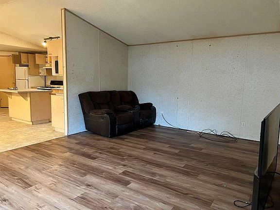 Here is a renovation waiting to happen. Look at the potential in this 2005 20 wide manufactured home. Big vaulted ceilings in the living room through to the kitchen. Big center prep island in the spacious kitchen with plenty of storage and a generous sized dining area as well. The primary bedroom in over 18 feet wide and has a walk in closet, huge 4 piece ensuite that consists of it own shower and features an oversized jetted corner tub surround by a wall of glass bricks. A beautiful design. Two more bedrooms and another full 4 pc bathroom on the other side of the home. Yes, the land is included, complete with new pavement on the street out front.