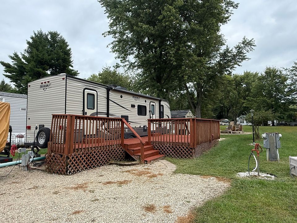 Located on a nice, level lot that backs to common ground, this property features a well-maintained 2016 Keystone Hideout Travel Trailer offering ample sleeping space, including a main bedroom with a brand-new mattress (2025), a convertible dinette, sofa, and bunk beds-bottom bunk also with a new mattress (2025). The trailer sits on a solid concrete pad and offers plenty of storage throughout, with all appliances included. Numerous upgrades include an updated electric box (2025) and expanded gravel parking area (2023). Enjoy outdoor living on the spacious deck-perfect for soaking up the sun or entertaining guests. The property also features a storage shed with an additional fridge, a grill, and a beautifully landscaped fire pit area complete with three benches/chairs. Please note: LSV and lawnmower are not included in the sale. All of this is just a short distance to Woodhaven Lake, Beach, Pool 2, and many more amenities. Don't miss out-call today for a showing! Please note that Woodhaven Lakes is a gated recreational community and cannot be used as a primary residence or homestead. You must be accompanied by a broker to view any properties, YOU CANNOT ACCESS THE CAMPGROUND WITHOUT A PASS. The property owner pays the association fees.