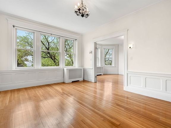 An abundance of natural light and treetop views highlight this stylish 2-bedroom, 2-full bath condo in Move-In condition! Expansive living room with gas fireplace & built-in bookcase features a bay window, a great space for evening sunsets. French doors lead to a formal dining room with decorative wainscoting. Eat-in-kitchen with gorgeous exposed brick features stainless steel appliances, granite counters & laundry nook. Enclosed rear porch is another great retreat with views of the surrounding green space. Main bedroom with full bath has ample closet space and morning sun. Guest bedroom is well-proportioned and also gets great light. Unit comes with 1 parking space - with potential to rent a 2nd adjacent space. Private extra storage in basement. Low fees & low taxes. Terrific neighborhood with Schick Park just around the corner, in close proximity to schools, green line C/D subway & just blocks to the restaurants/coffee shops of Washington Square!