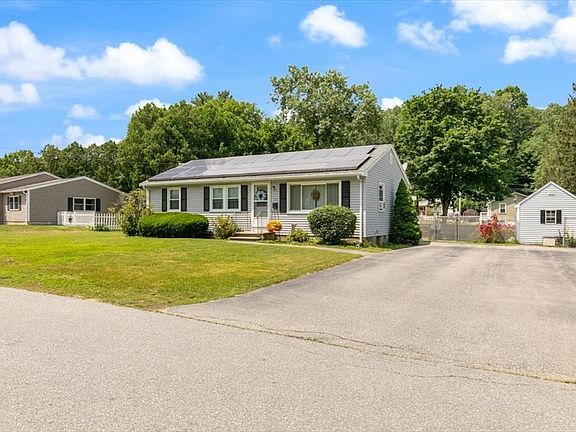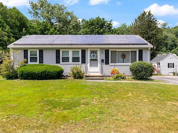 This well-maintained 3 bedroom, 1 bath ranch offers comfortable single level living with hardwood floors in the bedrooms and carpet in the living room where hardwood is  underneath. The eat-in kitchen is bright and functional, perfect for everyday meals.The basement is partially finished and offers great potential to expand your living space. Enjoy the outdoors in the beautiful, level, fenced-in yard with a large trex deck and storage shed ideal for entertaining, pets, or gardening. Solar panels are leased and will be transferred to the new buyers. The sellers have truly appreciated the energy savings and the impressive amount of electricity the system generates throughout the year making this home both efficient and eco-friendly. Conveniently located close to shops, medical facilities, and highways.