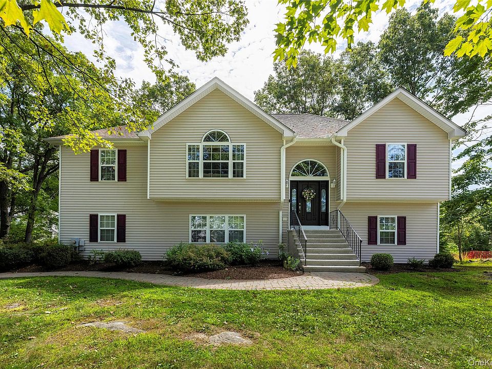 Peace and serenity will surround you in this 4 bedroom 2 full bath expanded contempory style raised ranch style home. Between the location and the layout of this retreat you will find that it is the perfect getaway of the busy life. This meticulously maintained home offers on the main floor a private primary suite with ensuite bath, large living room with wood burning fireplace, dining (with access to your deck) and kitchen area with breakfast area plus two other bedrooms on the opposite side of main floor that share a full bath. The downstairs offers the 4th bedroom, living area (with access to patio), 1/2 bath, laundry and access to the expansive 3 car garage. Woods and nature surround you along with access to the public lake. Come watch the colors explode this season.