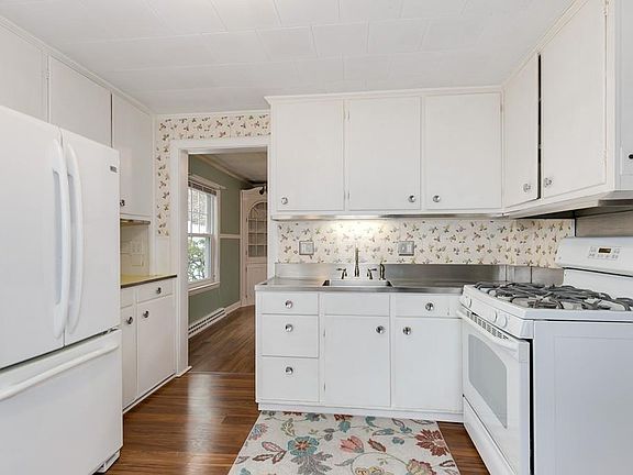 Vintage 2 bedroom colonial gem with landscaped front & side yards; covered front porch; life-time guaranteed vinyl siding; new double pane windows throughout; & a fully-fenced & landscaped private backyard with water feature and low deck. The first floor consists of a spacious & bright living room with blond hardwood floors, full bath w/ laundry room, formal dining room w/ new wood laminate floors, elegant built-in cabinets, a bright kitchen with gas range/stove, & back door leading to the fenced yard. Upstairs is a full bath, a sizable master bedroom newly painted with 2 large South-facing windows, refinished original hardwood floors, & large walk-in closet with recessed lighting. Across the hall is a sunlit bedroom, newly painted walls, 2 large North-facing windows, custom built-in shelving & closet. Bonuses are newer roofing; close to Highway 1, parks & schools; & it's on a corner lot in a quiet neighborhood at the top of a secluded hill, affording peekaboo views of downtown Boston.
