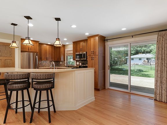 Welcome home! One look and you will see pride of ownership throughout. This open-concept ranch has many outstanding features that include custom oak kitchen cabinets and solid oak doors throughout the main floor. Solar panels and steel roof added in 2020, water heater new in 2021. Garage heater, garage windows, new lighting and additional wiring in the garage, and additional attic insulation added 2019-22. Relax and enjoy the peaceful neighborhood on the large deck.