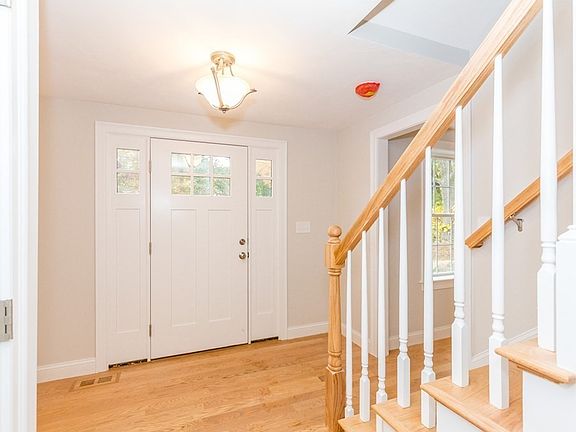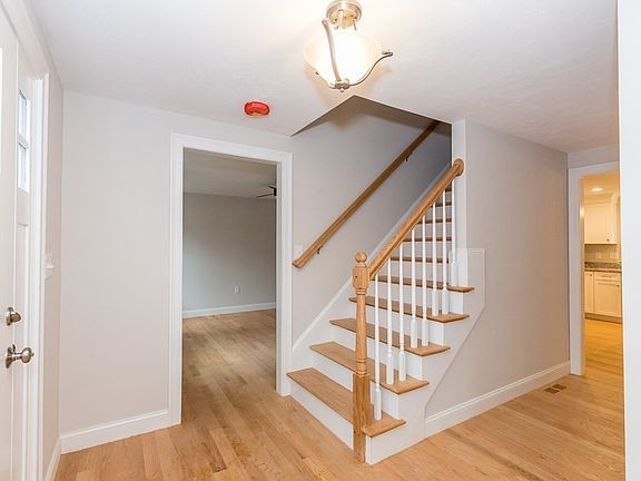 This new construction colonial is VERY close to the Burlington & Bedford lines and offers an easy commute with routes 3 and 128 nearby. Hardwood flooring throughout the first floor (except the laundry room and half bath). The kitchen offers crisp white cabinets, stainless steel appliances, a large center island, granite counters, recessed and pendant lighting. The dining area has a slider leading to the deck overlooking the private back yard and wooded lot abutting conservation land. Very nice formal dining room offering wainscoting and crown molding. The foyer offers a large coat closet and the hardwood staircase. The second floor offers 3 bedrooms and an office. The master bedroom has a walk in closet and full bath with double vanity. The main bathalso offers a double vanity. There is a walk up attic for future expansion. 2 car garage under. 15,000 sf lot. This home is near completion but there is still time to choose the flooring in the bedrooms and the office. Don't miss this 1!
