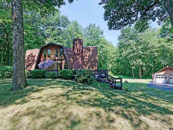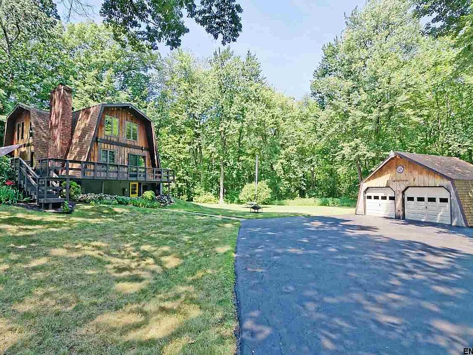 Almost 5 acres, plenty of privacy, and ideally located. This custom 1 owner home has all of the important features: walkout basement, cathedral ceilings, two car garage with additional storage, loft space currently used as art studio, first floor bedroom & laundry, master suite upstairs, manicured lawn, sprawling decks, 200 amp service, (generator included in sale), Vermont Castings woodstove. Easy access to Northway, & Schenectady this is a must see property. Take action, prequalified buyers only!