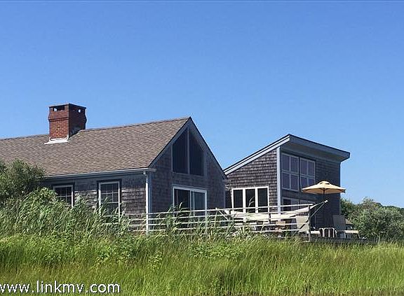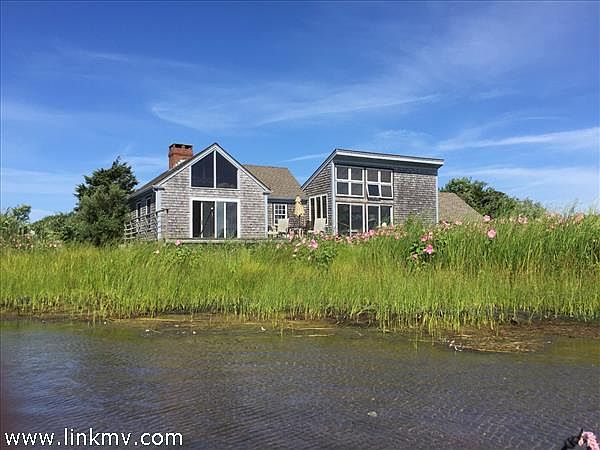 Chilmark Pond front cottage with Atlantic Ocean views and private beach lot. YOU CAN'T BE CLOSER TO CHILMARK POND. Unique waterfront summer house with outstanding ocean and pond views on Chilmark Pond. Very private. Nature preserve setting on 15 acres surrounded by marsh lands, heron and osprey.Nothing between you, the pond and ocean. Big deck for dining and relaxation. Shared dock on the pond. Private ownership in Atlantic Ocean beach short boat ride away.