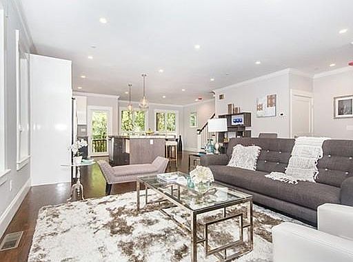 New construction contemporary townhouse on a quiet Brookline street. 3BR + Study, 3.5 BA on four levels of light filled space. Open floor plan, perfect for entertainment. The contemporary kitchen features custom cabinets, marble counters and Jennair stainless appliances. Master suite occupies the entire top floor with a private deck. 2 spacious bedrooms, and 2 full baths on the second floor. Three (3) decks, private patio, and front yard provide several nice open space choices. This home has an efficient hydro-air heating & AC system and a tankless hot water heater. The exterior has been completed with premium Hardie plank siding, azec trim, and premium Marvin windows. A short walk to the Beaconsfield T station (Green D line), schools, shops & the Longwood Medical area!