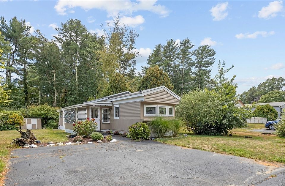 Well maintained manufactured home in Halifax Estates over 55 community. This home has a large open layout for the kitchen and living room.One small bedroom with laundry and one larger bedroom w/double closet. There are many windows throughout home that make the home bright and airy. Two 3 season porches add great space. Nice updated bathroom with tub/shower.There are 2 SMALL steps to get into trailer making it very easy to get into home from the car. There are trees behind the home and a shed with electricity. It’s such a comfortable home with a great yard & fabulous neighbors. The monthly fee of $670 covers a range of essential services, including: Basic cable TV, Weekly rubbish pickup, Town recycling,Town water, Septic system maintenance and/or updates. A one-time fee $1800 membership share purchase is required (this is not included in the home's price).Part of the membership application process, successful credit and background checks are required. Owner Owned Community! Built 1972