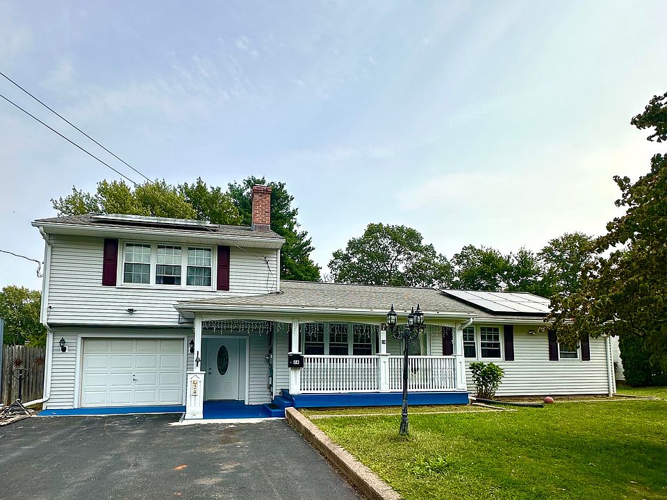 Welcome to 24 Bel Aire Circle, a beautifully renovated home in Windsor Locks. The owners have created a true oasis, thoughtfully expanding the home with additional bedrooms and another full bathroom (all permitted and reflected on town records). Each room offers tons of natural lighting, seamlessly blending style and comfort. The brand-new kitchen boasts stainless steel appliances, granite countertops, shaker cabinets, a new pantry, and a center island overlooking the dining area. Back door opens to a spacious backyard with pool-perfect for entertaining. The basement is roomy and has finished epoxy floors, framed for additional space of your choice; family room, gym, guest suite, etc. Don't miss an opportunity to take a look at this move in ready home.