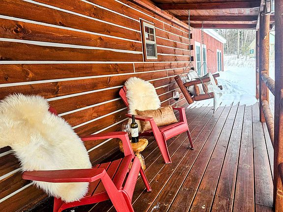 Just in time for ski season, this cozy and pristine Amish-built expanded 3-bedroom plus loft log cabin offers the perfect blend of rustic charm and modern comfort, located just minutes from Mount Snow. The thoughtfully designed floor plan includes a full bedroom and bath on the first level as well as laundry, a wonderful loft, and an additional sitting room with a propane stove, creating a warm and inviting ambiance. The open-concept living area highlights the expert craftsmanship, with warm wood finishes, plenty of natural light and a potbelly propane stove. Step outside to enjoy two spacious porches, one with a gorgeous log porch swing, ideal for soaking in the countryside views. Whether you are seeking a year-round residence or the ultimate weekend ski retreat, this log cabin delivers on comfort, style, and prime access to Vermont's winter adventures. Don’t miss your chance to own this unique property—call today!
