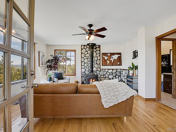 Find peace and quiet in this beautiful 2-story home in the desirable Burland Ranchettes neighborhood. Sitting at about 8000 ft above sea level- you'll have views of Staunton State Park, Mt Bailey, Mt Rosalie, Mt Blue Sky, Lions head and beyond. Pictures don’t do this home’s view justice. And the lot is absolutely amazing; Super fast FIBER INTERNET, Completely fenced 1.1 acre lot; with two electric gates and U-shaped driveway. Plenty of room for RV parking and all your outdoor recreational vehicles. Home features a brand new 20x30 permitted shop/ tandem garage with electrical and car lift. 1 car attached car-port and extra lean to off Tuff Built shed. This home is made for people who like their toys; storage for kayaks, canoes, UTV, ATV, you name it! A small dog run and concrete pad with electrical hookups for a hot tub! Step inside to a stunning hardwood floor living room with tons of natural light and view from every window. Wood burning stove for peaceful winter mornings and large deck to enjoy your summer evenings. Kitchen features gorgeous wood cabinets, gas stove, and newer appliances. Primary bedroom is on the main floor with a huge step in-shower in the primary bath. Large closets in all the bedrooms; home has lots of great storage options! Another full bath on the main level; upstairs you will find two more bedrooms both with great views! Newer roof/gutters, newer exterior paint, updated windows, incredibly high speed Internet, basement has exterior entrance with lots more storage or would make a great workshop, and “Fire mitigation” certification from the Fire Department- only 5 miles from their station. Home sits on the school bus route, short walk to Mt Bailey (a neighborhood only hike with stunning views) and close to everything near by! Come set your showing today and make this foothills house your home!