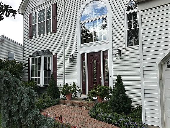 Sunny & bright updated Colonial with 4 large bdrms, 2.5 baths, formal LR & DR. Private 0.36 acres yard with mature evergreens, large deck & heated pool, irrigation system. Large kitchen renovated in 2013 with granite countertops and center island, ceramic tile floor, a separate dining area, sliders to deck, pool & yard. Fam Rm with a fireplace and new hardwood floors. Grand 2 story foyer. Living room w/bay window and a spacious Dining Room, both with hardwood floors. New carpet in all bedrooms. Master suite w/volume ceiling, sitting area, dormers for storage, walk in closet. Luxurious master bath w/jetted tub, double vanity & a large stone shower, all renovated in 2013. All bedrooms are spacious w/double closets. Finished Basement rec room/playroom area. Storage & utility room. Freshly Painted Interior.