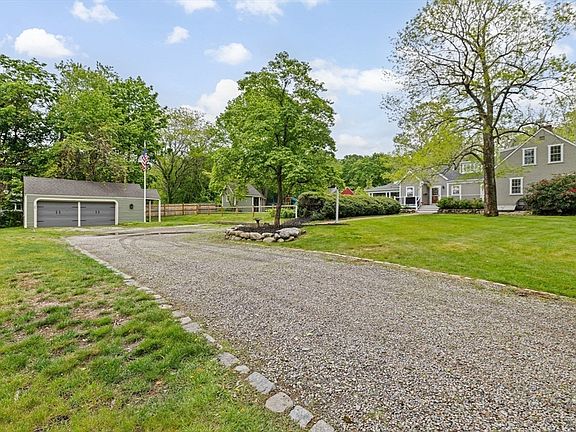 This 1814 antique Cape has been well cared for & renovated with thoughtful appointments in keeping with times past. Property sits on over two acres of lush lawn & is surrounded by conservation. There is a red barn in the back field & a two-car detached garage, two driveways, & additional outbuilding structure. The main house welcomes you with wide pine floors, beams, a center entrance fireplace, pellet stoves, & charm. The first level offers the option in front rooms to have a primary suite with  bath or an office, sitting room, & playroom or work area. The gathering room in the center, offers comfortable elegance. The kitchen & dining room are the heart of the home & have white cabinets, concrete counters, pantry, half bath, & all the appointments to create that gourmet meal. There is a beautiful sunroom with brick floors & walls of glass. 2nd floor has 3 spacious bedrooms, playroom, & full bath. Eames Way School District. Just moments to General Store, Genny's Ice Cream, & playground