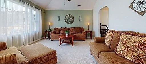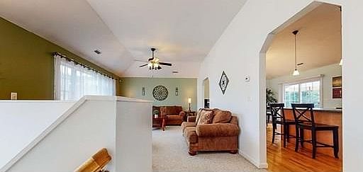 - Liv Dscrp: Flooring - Wall To Wall Carpet, Ceiling - Cathedral, Ceiling Fan(s), Window(s) - Picture, Archway