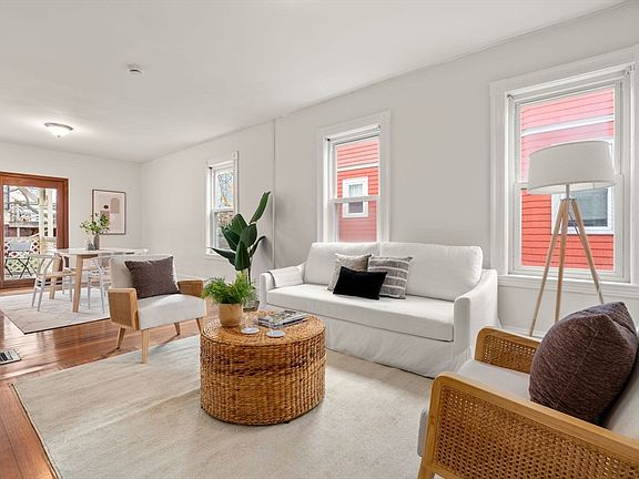 Welcome to 24 Cambridge Terrace. This quintessential 2 bedroom 1 bathroom condominium, is located on a quaint side street within minutes of bustling Porter Square shops and restaurants. This lovely home features an open modern layout with original period details and hardwood floors throughout. The spacious living room and dining area has double glass doors leading to an enormous back porch. This will be an additional living space in the warmer months perfect for entertaining guests. The inviting eat in kitchen has a breakfast bar, stainless steel appliances, gas stove and a full pantry. There are two nicely sized bedrooms and a full custom tiled bathroom. This unit has a wonderful flow with original hardwood floors throughout, an additional front porch and central heating and air conditioning.