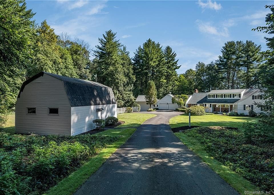 Stone pillars welcome owners & guests to meander down the private drive to the bucolic 3.5 acre setting of this expanded 5 BR Cape located on a prime cul-de-sac in the heart of Avon.Blue stone patios, expansive decking,stone walls & horse barn w/pasture picturesquely enhance tranquil grounds. The generous rooms of the open interior are designed to enjoy the beauty of each season illuminated by copious windows & multiple sky lights. Watch the leaves turn golden from the phenomenal cathedral ceiling frpl great room opening to heated 18x17 sunroom w/dry bar (not included in sf,or grab a sweater to relax on the covered deck w/skylights to enjoy the crisp fall air. Chefs will enjoy cooking in the sunny kit w/brkfst bar & sparkling windows overlooking manicured grounds.The extensive millwork of the frpl LR & DR creates gracious spaces to gather & entertain. Work from home or relish a quiet moment in the study w/built-ins. Two nicely sized 1st floor bedrooms include an owners ensuite w/private deck & addl BR w/adjacent hall bath.Should you prefer your owners suite on the upper level, the 2nd fl offers an amazing ensuite w/remodeled bth, sitting room & gorgeous palladium window. 2 addl bedrms share the upper level w/hall bath & central gathering space. Convenient skylit mudrm entrance & laundry rm. Fin w/o LL w/frpl & bar. Note: Central AC only in Grt rm, Lr/Dr & Kit. Town water, sewer,nat gas in street. The property has potential for additional building lot