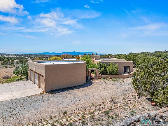 Welcome home to Tierra de Casta, where spacious living meets breathtaking beauty. This magnificent residence is situated on five wonderful acres, offering you all the room you could ever desire to breathe and relax. As you step inside this 4,000+ square foot home, you'll be captivated by the grandeur of large rooms and soaring ceilings, all adorned with the finest finishes. The primary suite is a true sanctuary, complete with a wood-burning fireplace and the rustic charm of vigas and tongue-and-groove ceilings. The luxurious primary bath invites you to unwind in the Jacuzzi tub or separate shower, and the exceptionally large walk-in closet provides an abundance of space. The home also features two additional generously sized bedrooms, each with its own ensuite bath, providing comfort and privacy for family or guests. A large den, office, or library offers a versatile space for work, study, or relaxation. The heart of the home is the great room, which offers wonderful western views that will take your breath away as the sun sets. This space provides direct access to the formal dining room, where a beautifully stamped tin ceiling adds a unique and elegant touch to gatherings. The well-appointed kitchen, featuring a stunning island, is ready for all your culinary adventures. Don't forget the sunroom, a cheerful spot with easy access to the rear portal, perfect for enjoying your morning coffee or evening refreshments. If you've been searching for a place with ample space to live, entertain, and create lasting memories, look no further. This home truly has all you need and so much more. Welcome to Tierra de Casta.