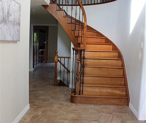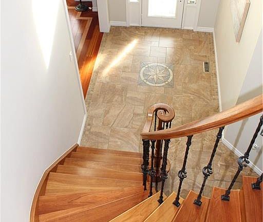 Oasis like backyardLarge cedar deckModern lightsFormal dining roomBrazilian sherry hardwoodMaple custom kitchenGranite counters