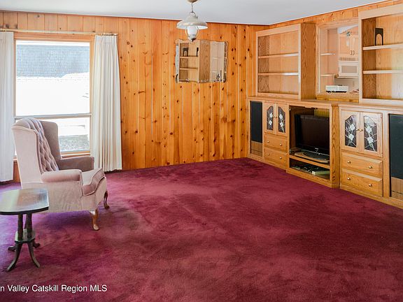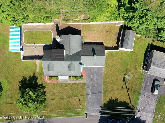 This lovely modest neighborhood houses this cape home with features for everyone. Large living area consisting of Family room with FP sliders to patio cornered windows and custom cabinetry/shelving by DeCicco Cabinetry as is the kitchen custom by DeCicco Cabinetry . Wood flooring throughout except in Family Room , Living room large picture window with painted Muriel wall and bluestone FP, Office and one BR on first floor. 2 BRs up with knotty pine walls and ceiling. Basement consists of playroom, workshop and laundry area. Central Air on first floor and central vacuum throughout large storage barn for that contracting person to store build or man cave. Pool was filled in with soil but pool house storage still available