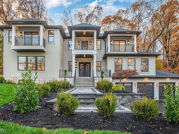 Experience elevated living at 24 Cliffside Drive, Livingston, an exquisite new construction estate spanning approximately 6,500 sq ft of refined design and craftsmanship.This 5-bedroom, 6.5-bath luxury home combines timeless architecture with modern sophistication, offering the ideal blend of comfort, function, and style. Step inside to a grand foyer that opens into bright, open-concept living spaces adorned with custom millwork and oversized windows. The chef's kitchen is the centerpiece of the home, featuring a striking double-profile quartz island, matching full-height quartz backsplash, professional-grade appliances, and a butler's pantry for effortless entertaining. The adjoining kitchen and living room are anchored by a sleek fireplace, while a second fireplace enhances the formal dining room's elegant ambiance. Upstairs, retreat to the primary suite with a spa-like bathroom, custom walk-in closet, and a private balcony overlooking the grounds. Two additional balconies provide peaceful second-floor escapes. The fully finished basement expands the living space with a wet bar, wine cellar, media area, and recreation space, perfect for gatherings or relaxation. Outdoors, enjoy a covered patio with a outdoor kitchen, ideal for year-round entertaining. The stone and stucco exterior, three-car garage, and 10-year builder's warranty complete this extraordinary offering. 24 Cliffside Drive redefines modern living in one of Livingston's most sought-after neighborhoods!