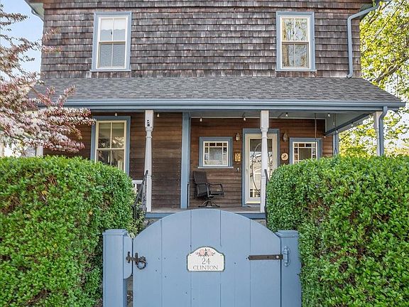 In the heart of the village, this classic Victorian enjoys a welcoming wrap-around porch and a rear deck overlooking a deep and inviting backyard. A lovely foyer with a crafted oak staircase and stained glass windows introduces you to the first floor, which has an open living and dining space with large south-facing windows, a kitchen with granite counters, laundry and pantry room and an updated full bath off a mud room which leads to the back deck. The second floor offers an ensuite primary bedroom with an updated bathroom which features basketweave tile and a frameless glass door, three additional bedrooms and an updated full guest bath. A fully finished, 770 sq. ft. third floor provides 3 bedrooms, a full bathroom, office space and common area and could be converted from seasonal to year-round use by adding supplemental heat. Original moldings, plaster walls, cast iron radiators, rich original honey colored floors, arched openings, and insulated Pella windows combine to provide a sense of home and comfort while a 3-year old roof (with a 20 year transferable full replacement (materials and labor) warranty, large basement with updated basement windows and abundant storage space and two garden sheds complete this delightful property. Just a few blocks from the Town Center, convenient to the marina, stores and restaurants, this in-town home is ready for summer occupancy.