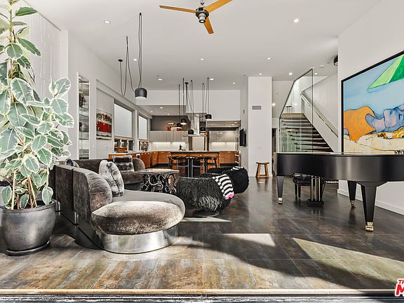 Experience this exceptional architectural residence - nearly 4,000 sqft of coastal luxury just steps from the sand, crowned by a 1,500 sqft rooftop deck with views, views, views! A private gated entry ushers you into lush garden surroundings and a tranquil front patio, setting the stage for the serenity within. Inside, soaring ceilings, gallery-style walls, and oversized ceramic tile floors create an atmosphere of modern elegance. Accordion glass doors dissolve the boundary between indoors and outdoors, opening the main living spaces to sunlight and ocean breezes. The chef's kitchen is both refined and functional, anchored by a central island with breakfast bar and Viking double oven and range. Subzero refrigeration, Miele espresso center, wall oven, and dishwasher pair with quartz counters and abundant cabinetry to satisfy the most discerning cook. A walk-in pantry, communications hub, and dedicated laundry room enhance convenience, while a sleek glass-walled staircase and in-home elevator connect all levels with ease. Upstairs, the expansive primary suite is framed by treetop and ocean views, complete with a generous walk-in closet, fireplace, and a spa-inspired bath featuring a soaking tub, walk-in shower, and custom finishes. Two secondary bedrooms with built-in desks share a well-appointed bath, while a remarkable two-story flex space offers endless possibilities as a library, creative studio, office, or private guest apartment with its own entrance. The crown jewel is the rooftop deck, a private sanctuary with 360-degree views, lounge and dining areas, spa tub, and built-in grill. Solar panels help offset energy use, and parking for up to four vehicles indoors and out plus ample storage rounds out the offering. This is Venice beach living at its most refined, a rare opportunity to own a home that blends architectural artistry, coastal ease, and unparalleled views in one of Southern California's most sought-after locations.