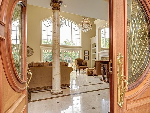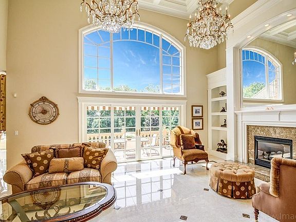 Opulent and elegant 9,396 sq ft home with spectacular parklike grounds in an estate neighborhood. This 6 bedroom, 6 and 2 half bath home was custom built with attention to detail. Numerous rooms on all 3 levels, many opening to stone tiered terraces and decks overlooking gunite pool/hot tub, Pool House, and sports court with outdoor lights and outdoor dining area making this an unparalleled retreat inside and out. Interior highlights include gourmet cherry Kitchen**Glass hexagonal Dining Room with maple and granite wetbar**Great Room w/20' coffered ceilings and architectural millwork, built-in bookcases, gas fireplace w/marble surround and spectacular crystal chandeliers**Spacious 1st floor Master Suite with balcony access**Master Bath w/sauna & jacuzzi. Huge finished lower level incorporates Entertainment Room, Kitchenette, Bedroom w/patio access, Full Bath, Gym Room w/sauna, 2nd Laundry Room. A few other home notables: extensive radiant heated marble floorings and heated 3-Car Garage