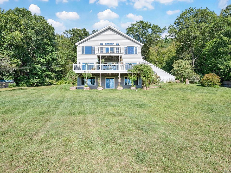 Gorgeous views in East Granby! This absolutely beautiful single-family home features 4 spacious bedrooms and 3.5 luxurious bathrooms. From the moment you step inside, you'll be captivated by the spectacular views visible from both the open-concept living room and the expansive primary bedroom. The heart of the home is a stunning, oversized kitchen with a huge island-perfect for entertaining and gathering with family and friends. The kitchen and bathrooms have been thoughtfully updated with high-end finishes that make everyday living feel like a dream. Enjoy cozy evenings by the stone gas fireplace with custom built-ins, and retreat to the exceptionally spacious primary suite, which includes a private deck with breathtaking views and a spa-like bathroom with heated floors for ultimate comfort. The walkout lower level offers flexible living options with a large family room (complete with a pool table), a separate bedroom, and a full bath-also featuring heated floors. It's ideal for guests, multi-generational living, or a private home office. Outdoor enthusiasts will love the proximity to hiking trails and the bike path, and the home is located on a private road in one of East Granby's most desirable neighborhoods. Don't miss this rare opportunity to own a truly exceptional home with unmatched views and luxurious amenities! House has solar panels 4th Bedroom in located in Lower level (no closet) -full bathroom too