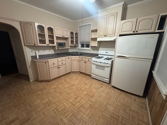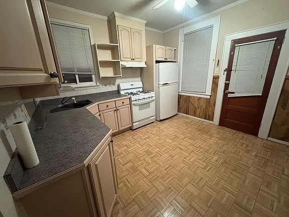 No fees. Owner pays water, tenant pays for gas and electric. Minimum one year lease. Off street parking. Laundry in building.