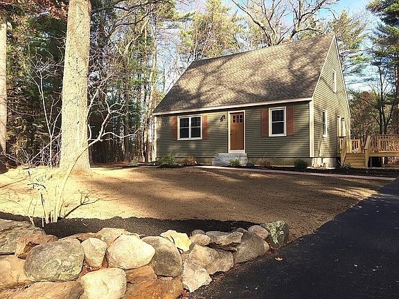 Wonderful 3-4 bedrm, 2 full bath expanded Cape style home on a quite Country Rd in Westford, MA. This home has been completely renovated from top to bottom. The siding, roof, windows, doors, electric, plumbing, baths, kitchen, appliances, deck, fixtures....are all brand new! The floor plan has been changed to allow for an open kitchen, dining and living area... all of which have hardwood floors. The kitchen has upgraded, soft-close cabinets, granite counters & high end stainless steal appliances. There is the option of having a first floor master or you can choose one of the three additional bedrooms on the second floor. Both of the full baths have custom tile work & beautiful vanities. The lower level has been finished bringing the total living area to approx. 1700 sq. ft. The large side deck & private backyard are great for entertaining. Quality & craftsmanship throughout! Minutes from Westford center, town shops & within walking distance to the prestigious Westford Academy.
