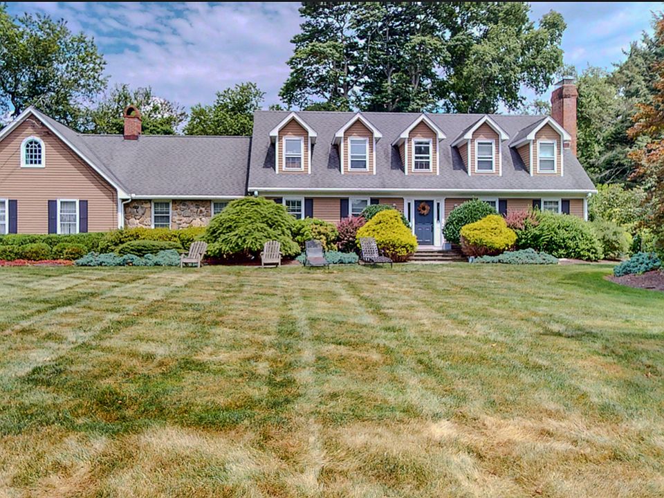 Beautiful 3,991 sq. ft. Colonial Cape on a quiet cul-de-sac! Main-floor primary suite with his-and-hers baths, walk-in closets, and deck access. Updated kitchen with eat-in dining flows into the vaulted family room with two fireplaces and built-ins. Upstairs offers a second primary suite plus two additional bedrooms. Partially finished lower levelperfect for a playroom or gym. Central air will keep you comfortable all year long. Enjoy a private, well-kept backyard ideal for relaxing or entertaining. Electric car charger available for use on the property.