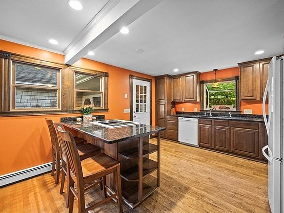 Dreaming of living in a peaceful, well-established neighborhood? This charming Cape, with great curb appeal, a cozy farmer’s porch, breezeway, and attached 2-car garage, has been lovingly maintained by the same owner for over 50 years, and is ready to be your "home sweet home!" Offering nearly 1,600 sq. ft. of inviting living space, the kitchen features granite countertops and an island with seating for 3, overlooking the dining area—perfect for entertaining. The living room, with HW floors, a fireplace with a beautiful mantle, and custom bookcases, creates a warm, welcoming space. Upstairs, find a full bath and three bedrooms, all with HW floors. The first-floor half bath includes laundry for added convenience. The private backyard with an in-ground pool is ideal for summer fun, and the spacious basement with a pellet stove offers expansion potential. Close to Whitman and Abington train stations, parks, and local amenities, this is the perfect place to call home!