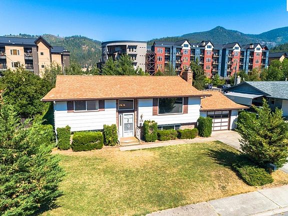 With a location that commands attention, this 4-bed, 2 bath home in Silver Mountain Resort's backyard is the perfect vacation house or year-round home. Take in the views of the snow capped mountains and the charming gondola from the living room! Recently updated with tasteful finishes and local charm, the home highlights the natural surroundings with hardwood floors and large windows that let in natural light and mountain scenery. Warm up next to the classic floor to ceiling brick fireplace after a day at the resort or add a hot tub to the large fenced backyard and bring the fun outside! If 4 bedrooms isn't enough for everyone, the large family room in the basement can be used for additional sleeping and even has its own fireplace. Skiing, snowboarding, mountain biking, hiking, and much more to enjoy year-round here in Kellogg. Close to historic downtown with restaurants, breweries, shops, & park!