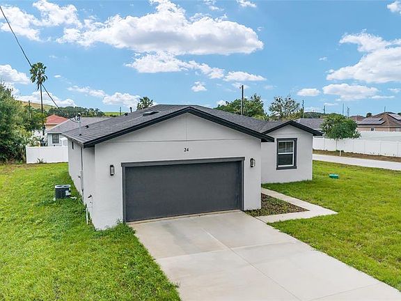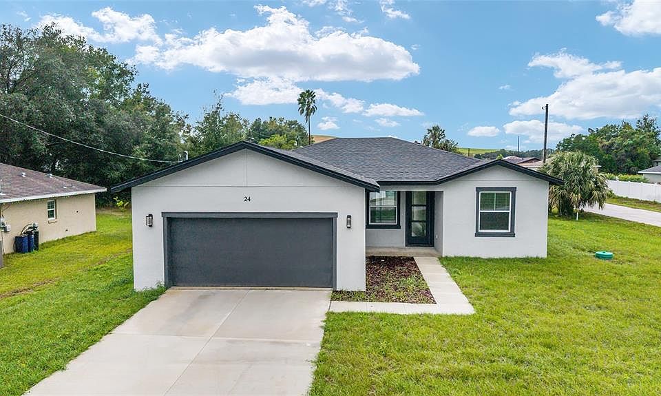 Welcome to this stunning newly built home, perfectly positioned on a desirable corner lot in the heart of Silver Springs Shores. Blending timeless design with modern elegance, this residence is sure to impress from the moment you arrive. Step inside through the covered foyer to an open-concept floorplan adorned with luxury vinyl flooring, a spacious dining area, and an inviting living room. The chef’s island kitchen is a true showstopper—featuring stainless steel appliances, quartz countertops, and a pantry that provides both style and function. The luxurious primary suite is a private retreat, highlighted by a custom barn door entry that opens to an oversized spa-inspired bathroom. Enjoy dual vanities, a massive walk-in shower with a classic rainshower head, and expansive walk-in closets designed to fit your lifestyle. Perfect for entertaining, the main living area extends seamlessly outdoors through 8-foot, three-panel sliding glass doors, leading to a patio which is ideal for weekend gatherings or relaxing evenings under the stars. Located in central Silver Springs Shores, you’ll enjoy close proximity to shopping, dining, and medical facilities. Don’t miss this rare opportunity to own a brand-new home in a prime location!
