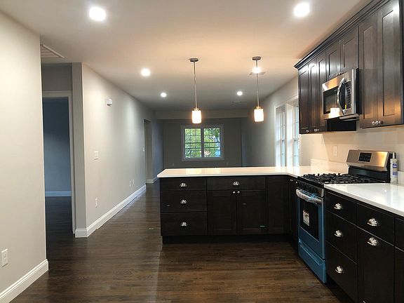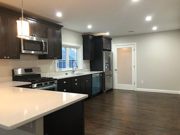 This second floor apartment is located in a two family home. This unit has been completely renovated. Features include a Gorgeous New Kitchen with Stainless Steel Appliances including microwave, Modern Quarts Counters and Espresso cabinets with large peninsula perfect for morning coffee. Large Sunny living room is open to dining room area with beautiful hardwood flooring and Modern recess lighting. Full bath has tile surround in tub and ceramic tile floors. Three Bedrooms feature large closets and lots of natural light. Other amenities include Central A/C , washer/dryer in unit, storage in back hall, energy efficient appliances and heating system, parking for two cars (tandem) in driveway. This spacious home is located minutes to highway and major routes. Vacant, easy to show. 700+ credit scores is must. Agent is part owner in property. NO PETS AND NO SMOKING Tenants to pay own utilities
