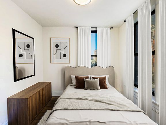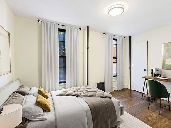 This newly-renovated corner unit home features sprawling hardwood floors, brand new stainless steel kitchen, large windows, and overhead lighting throughout. The windowed kitchen features premium counters, stainless steel appliances including a dishwasher for modern convenience, ample cabinetry with additional overhead shelving, and space for a small dining table. The open layout makes entertaining from kitchen to living room easy, and all bedroom are spacious + include their own generous closets.