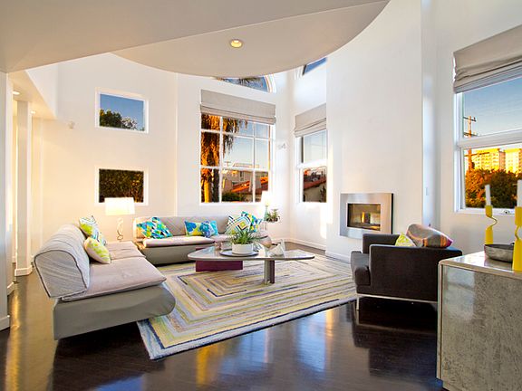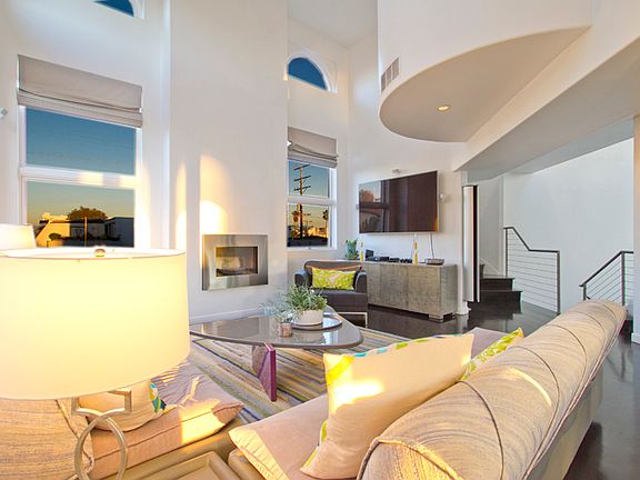 Sun-filled architectural townhouse in chic modern 2-unit bldg on desirable walk street just blocks to beach and Marina cafes. Inspiring volumes of space and light w/gorgeous maple flrs, skylites and soaring ceilings, ocean views from living room, dining and kitchen. Huge sunset view deck off spacious entertainers loft. Gourmet kitchen w/Subzero and Thermador appls, luxe master w/FP, view balcony and designer spa bath. High-end audio visuals including LCD and blt-in spkrs, private garage. Truly the finest!