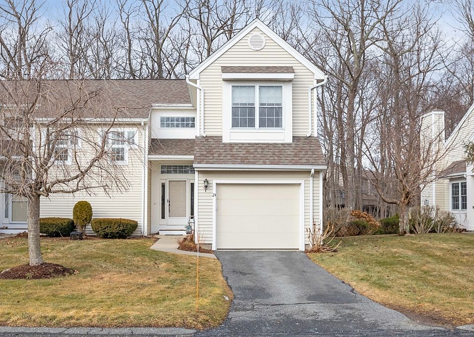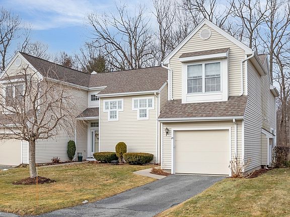 Offer Deadline Tues 1/28 at Noon make offer good thru 7pm. Welcome to Forest Hills - Dover Style End Unit Townhouse with a very private location with wooded views. 3 spacious levels of living, perfect for entertaining! The open floor plan allows you to create your perfect living space. On the main level you will find beautiful hardwood floors throughout (kitchen has tile), a living room with a dual sided gas fireplace which opens up into a large open dining room area and den. The upper level you'll find 2 spacious bedrooms, a roomy loft, full bathroom and laundry and loads of closets space. The master bedroom offers his and hers closets and a master bath with a double vanity and soaking tub and separate shower. The lower level boasts a front to back walkout family room as well as a third bedroom, teen suite or home office and a full bath. An added bonus to this complex is the Martha Deering Wildlife jogging/walking trails just a quick walk from the unit. Easy access to the Mass Pike.